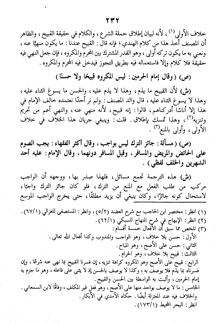 ص: (وقالَ إمام الحرمين: ليس المكروه قبيحاً ولا حسناً).