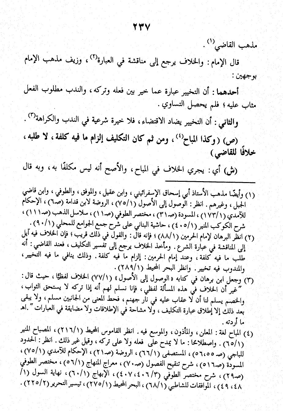 ص: (وكذا المباح ومن ثمَّ كانَ التكليف إلزام ما فيه كلفة، لا طلبه، خلافاً للقاضي).