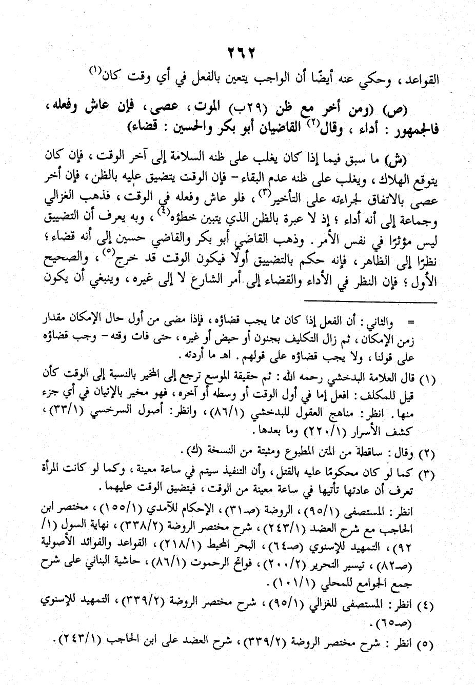 ش: ما سبق فيما إذا كانَ يغلب على ظنه السلامة إلى آخر الوقت، فإنَّ كانَ يتوقع الهلاك، ويغلب على ظنه عدم البقاء ـ فإنَّ الوقت يتضيق عليه بالظن، فإنَّ أخر عصى بالاتفاق لجراءته على التأخير، فلو عاش وفعله في الوقت، فذهب الْغَزَالِيّ وجماعة إلى أنه أداء، إذ لا عبرة بالظن الذي يتبين خطؤه، وبه يعرف أن التضييق ليس مؤثراً في نفس الأمر، وذهب القاضي أبو بكر والقاضي حسين إلى أنه قضاء، نظراً إلى الظاهر، فإنَّه حكم بالتضييق أولاً فيكون الوقت قد خرج، والصحيح الأول، فإنَّ النظر في الأداء والقضاء إلى أمر الشارع لا إلى غيره، وينبغي أن يكون