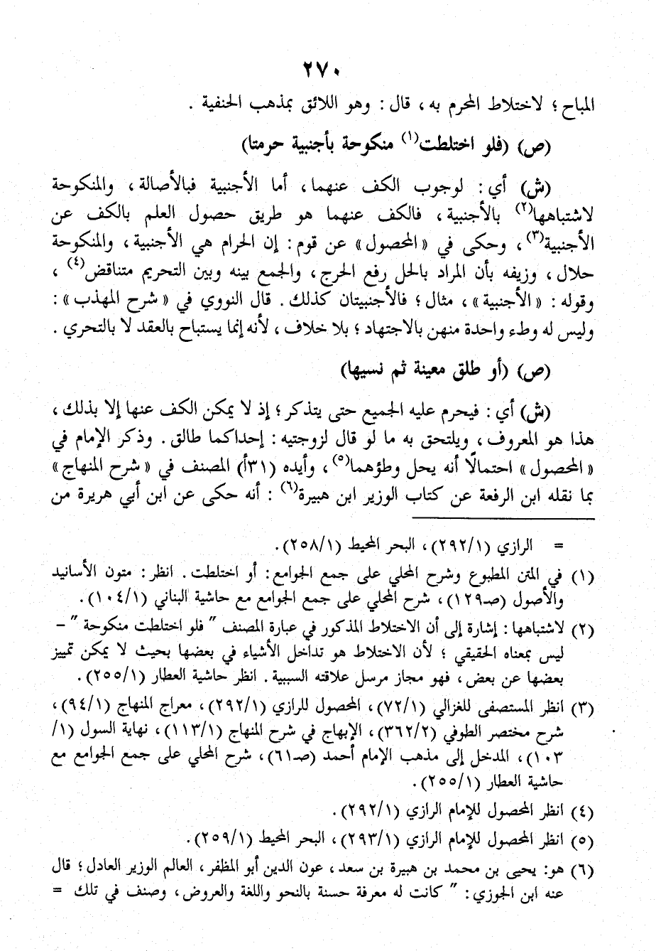 ش: أي: لوجوب الكف عنهما، أمَّا الأجنبية فبالأصالة، والمنكوحة لاشتباهها بالأجنبية، فالكف عنهما هو طريق حصول العلم بالكف عن الأجنبية وحكى في (المحصول) عن قوم: إن الحرام هي الأجنبية، والمنكوحة حلال، وزيفه بأن المراد بالحل رفع الحرج، والجمع بينه وبين التحريم متناقض، وقوله: (الأجنبية) مثال، فالأجنبيتان كذلك، قالَ النَّوَوِيّ في (شرح المهذب): وليس له وطء واحدة منهن بالاجتهاد، بلا خلاف؛ لأنَّه إنما يستباح بالعقد لا بالتحري.