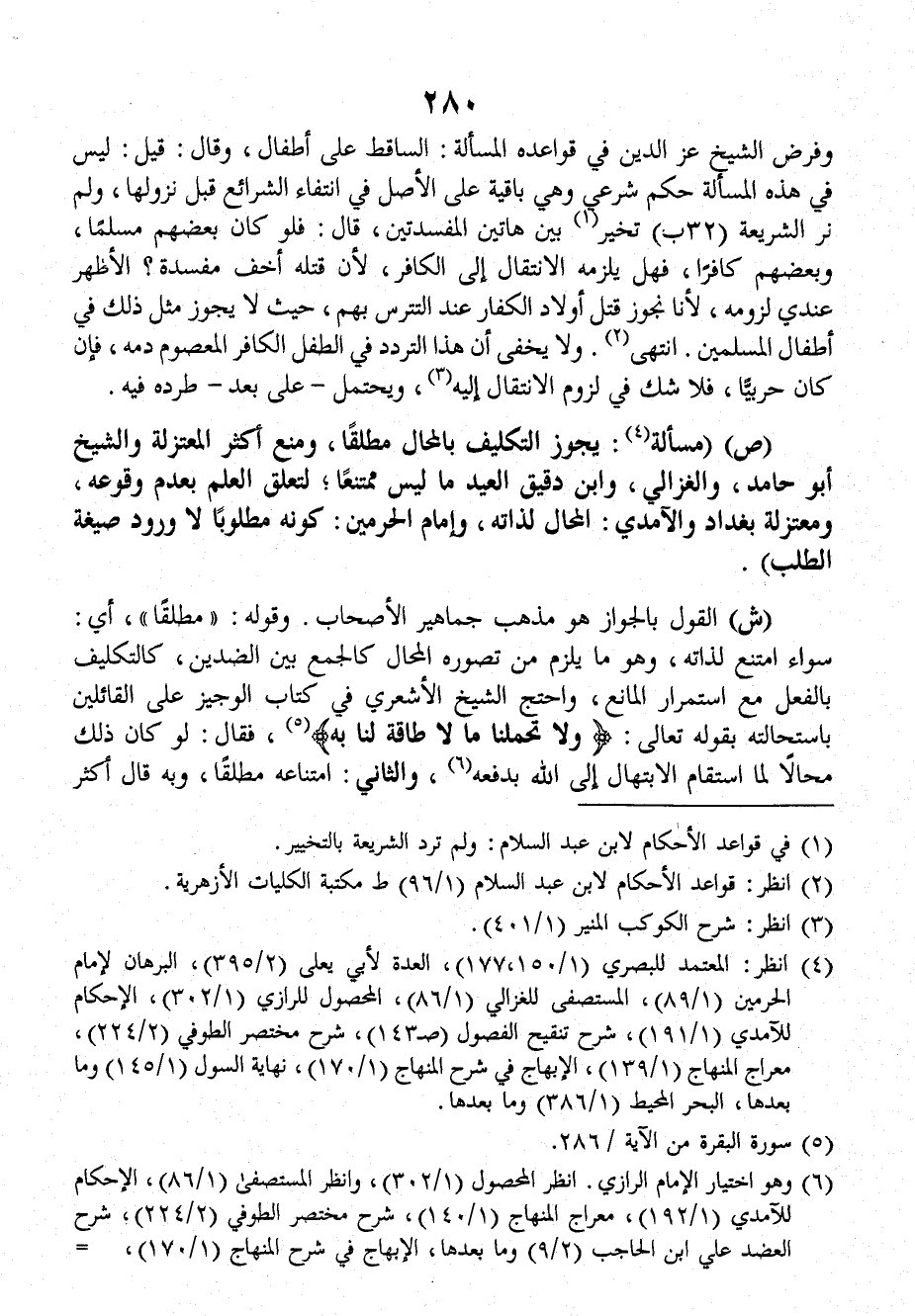 ش: القول بالجواز هو مذهب جماهير الأصحاب. وقوله: (مطلقاً)، أي: سواء امتنع لذاته، وهو ما يلزم من تصوره المحال كالجمع بينَ الضدين، كالتكليف بالفعل معَ استمرار المانع، واحتج الشيخ الأشعري في كتاب الوجيز على القائلين باستحالته بقوله تعالى: {ولا تحملنا ما لا طاقة لنا به} فقالَ: لو كانَ ذلك محالاً لما استقام الابتهال إلى اللهِ بدفعه.