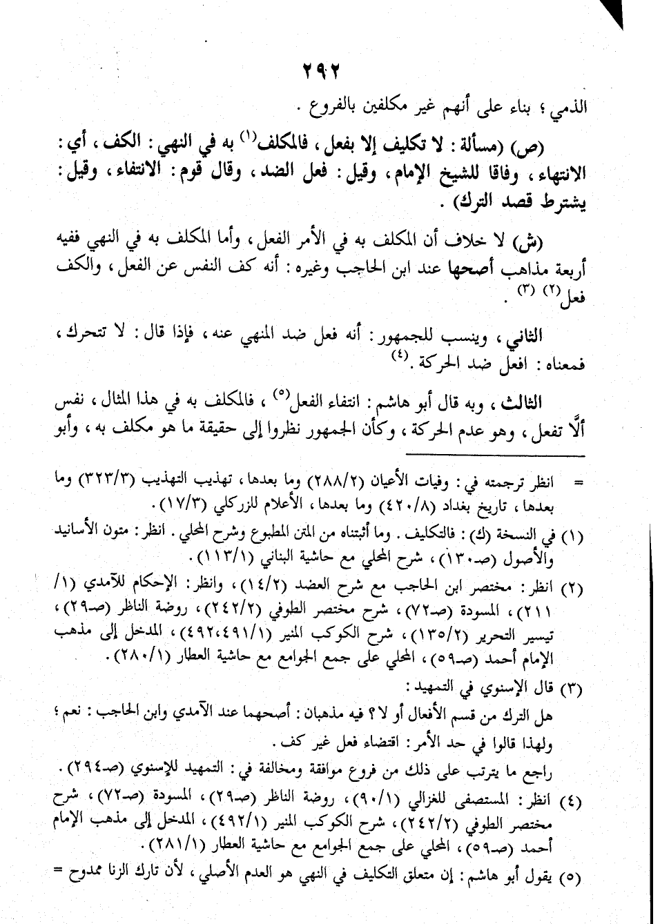 ش: لا خلاف أن المكلف به في الأمر الفعل، وأما المكلف به في النهي ففيه أربعة مذاهب أصحها عندَ ابن الحاجب وغيره: أنه كف النفس عن الفعل، والكف فعل.