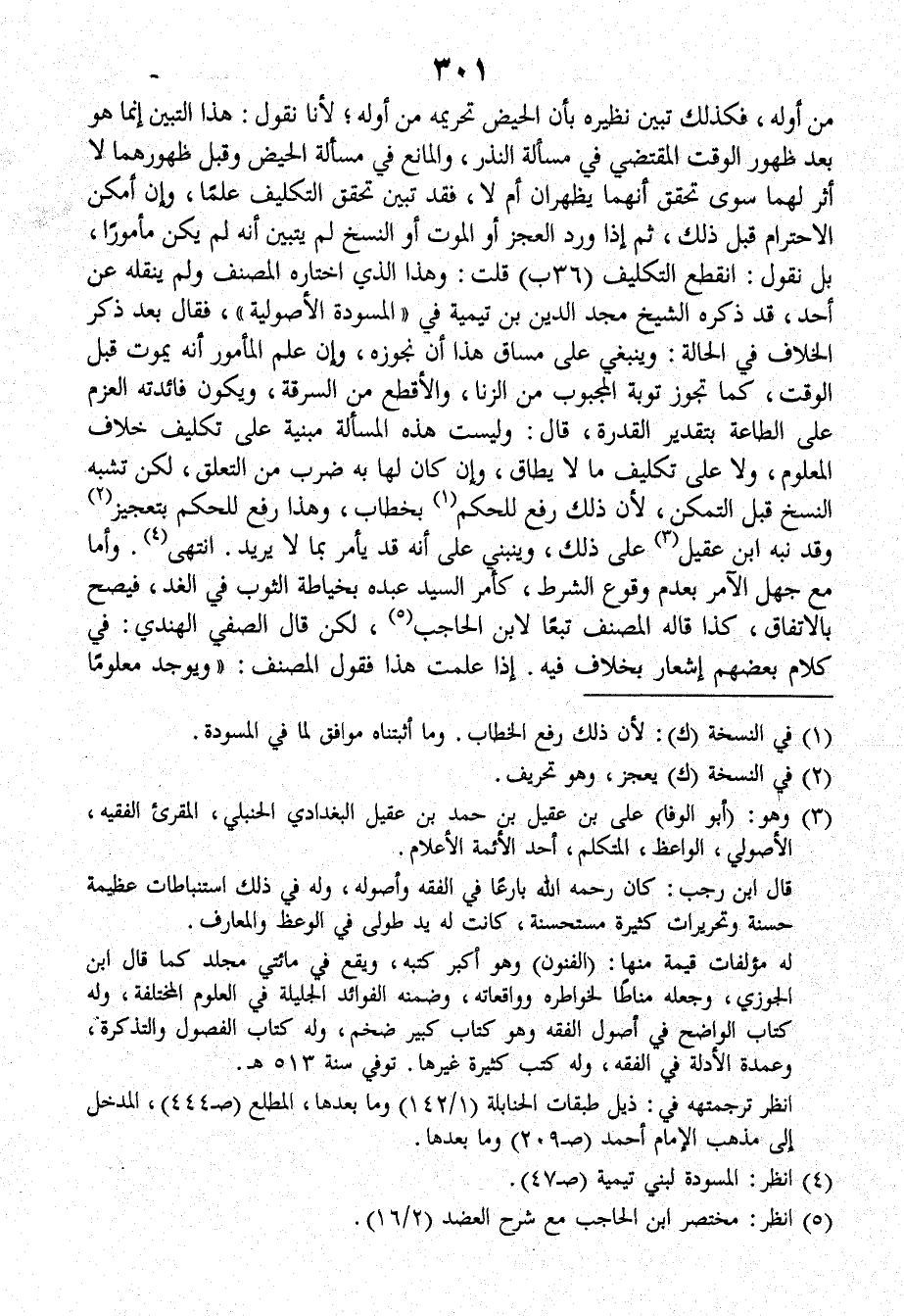 من أوله، فكذلك تبين نظيره بأن الحيض تحريمه من أوله؛ لأنَّا نقول: هذا التبين إنما هو بعد ظهور الوقت المقتضي في مسألة النذر، والمانع في مسألة الحيض وقبل ظهورهما لا أثر لهما سوى تحقق أنهما يظهران أم لا، فقد تبين تحقق التكليف علماً، وإن أمكن الاحترام قبل ذلك، ثمَّ إذا ورد العجز أو الموت أو النسخ لم يتبين أنه لم يكن مأموراً، بل نقول: انقطع التكليف (٣٦ ب) قلت: وهذا الذي اختاره المصنف ولم ينقله عن أحد، قد ذكره الشيخ مجد الدين ابن تَيْمِيَّةَ في (المسودة الأصولية) فقال بعد ذكر الخلاف في الحالة: وينبغي على مساق هذا أن نجوزه، وإن علم المأمور أنه يموت قبل الوقت، كما تجوز توبة المجبوب من الزنا، والأقطع من السرقة، ويكون فائدته العزم على الطاعة بتقدير القدرة، قالَ: وليست هذه المسألة مبنية على تكليف خلاف المعلوم، ولا على تكليف ما لا يطاق، وإن كانَ لها به ضرب من التعلق، لكن تشبه النسخ قبل التمكن؛ لأنَّ ذلك رفع للحكم بخطاب، وهذا رفع للحكم بتعجيز وقد نبه