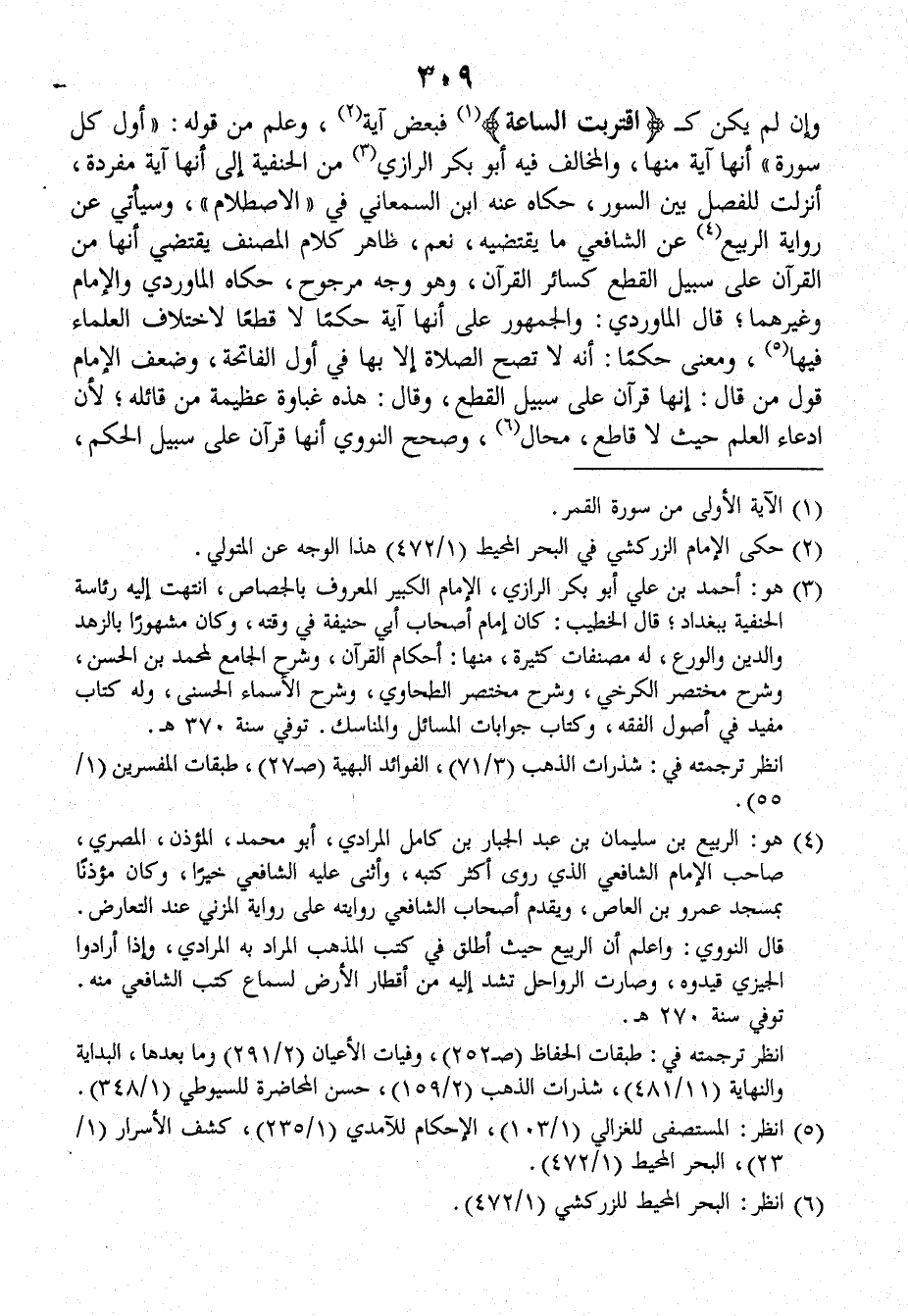 وإن لم يكن كـ {اقتربت الساعة} فبعض آية، وعلم من قوله: (أول كل سورة) أنها آية منها، والمخالف فيه أبو بكر الرَّازِيّ، من الحنفية إلى أنها آية مفردة، أنزلت للفصل بينَ السور، حكاه عنه ابن السمعاني في (الاصطلام) وسيأتي عن رواية الرَّبِيع، عن الشافعي ما يقتضيه، نعم ظاهر كلام المصنف يقتضي أنها من القرآن على سبيل القطع كسائر القرآن، وهو وجه مرجوح، حكاه الماوردي والإمام وغيرهما، قالَ الماوردي: والجمهور على أنها آية حكماً لا قطعاً لاختلاف العلماء فيها، ومعنى حكماً: أنه لا تصح الصلاة إلا بها في أول الفاتحة، وضعف الإمام قول من قالَ: إنها قرآن على سبيل القطع، وقالَ: هذه غباوة عظيمة من قائله؛ لأنَّ ادعاء العلم حيث لا قاطع، محال، وصحح النَّوَوِيّ أنها قرآن على سبيل الحكم،