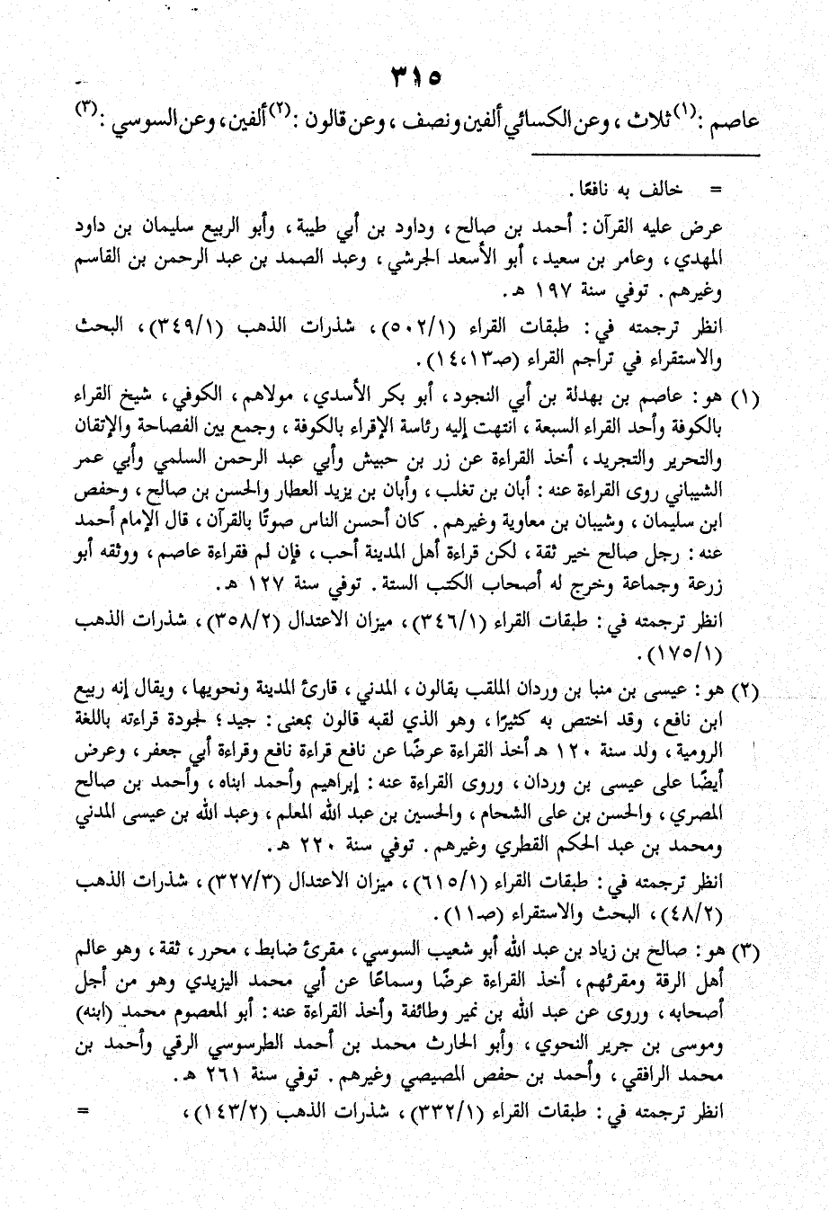 عاصم: ثلاث، وعن الكِسَائِيّ ألفين ونصف، وعن قالون: ألفين وعن السوسي: