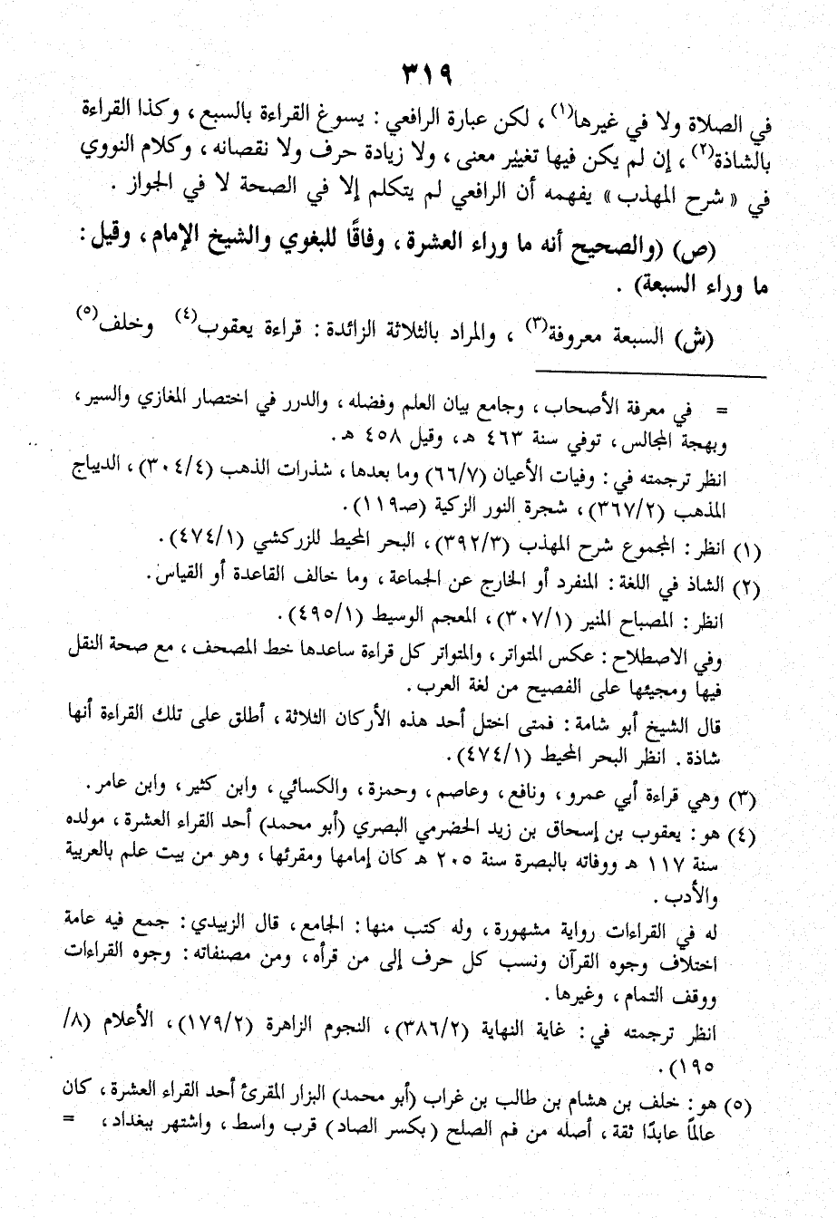 ش: السبعة معروفة، والمراد بالثلاثة الزائدة: قراءة يعقوب وخلف