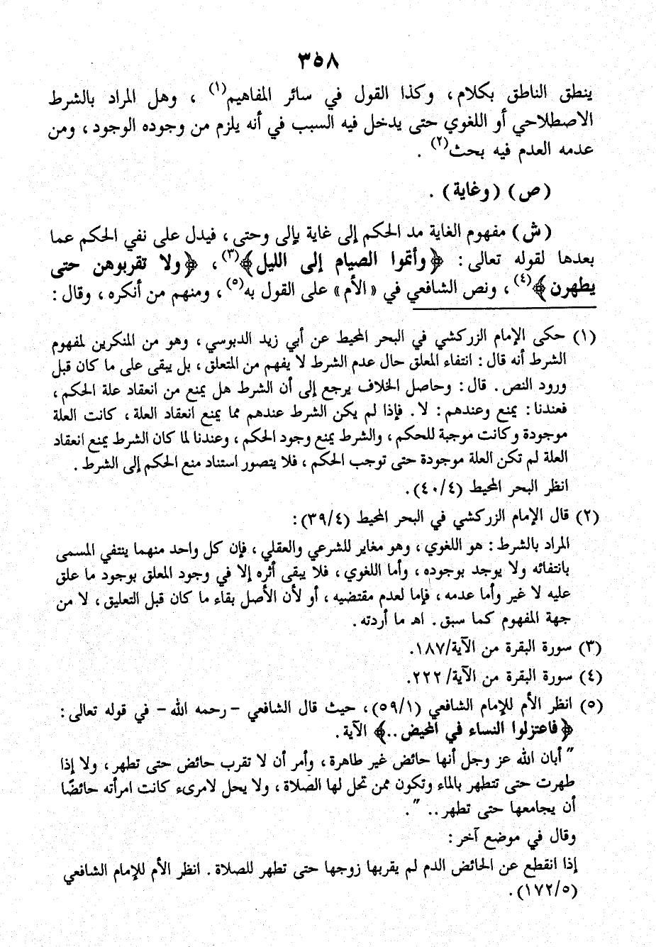 ش: مفهوم الغاية مد الحكم إلى غاية بإلى وحتى، فيدل على نفي الحكم عما بعدها لقوله تعالى: {وأتموا الصيام إلى الليل} {ولا تقربوهن حتى يطهرن} ونص الشافعي في (الأم) على القول به، ومنهم من أنكره، وقالَ: