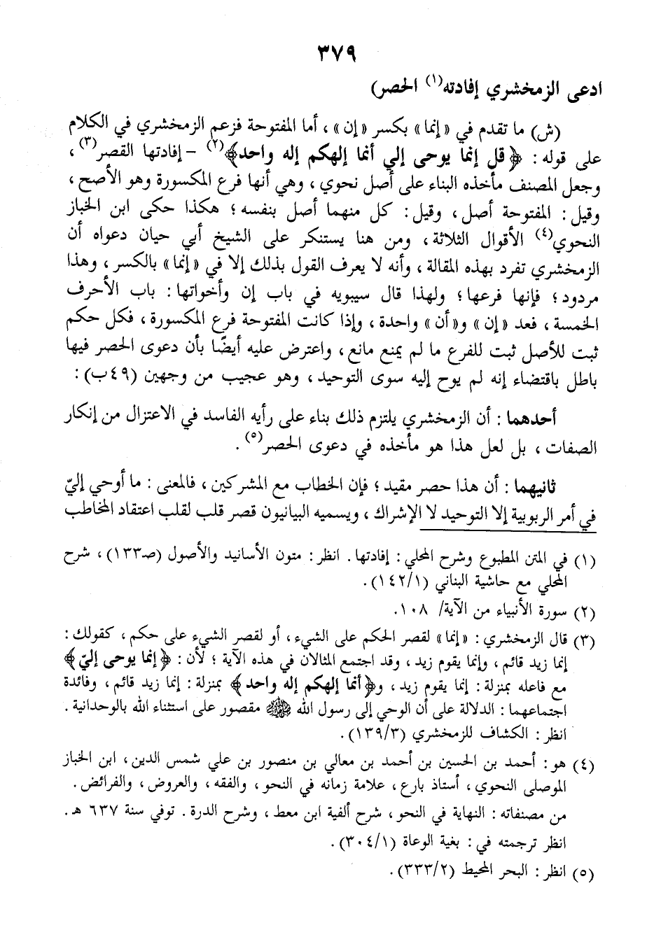 ادَّعَى الزَّمَخْشَرِيُّ إِفَادَتَه= الحَصْرِ).