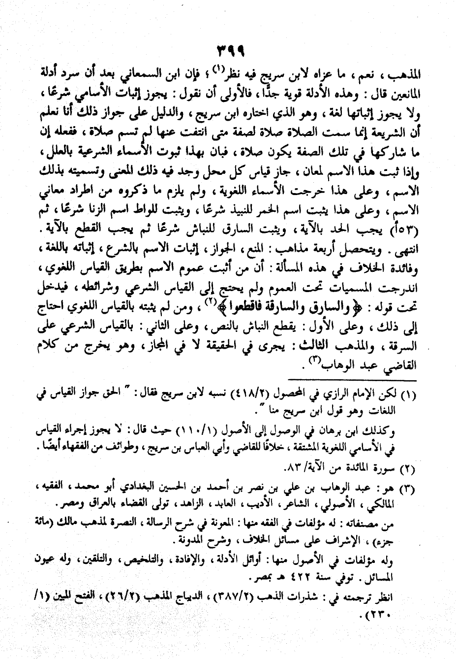 المَذْهَبِ، نَعَمْ، ما عَزَاهُ لابنِ سُرَيْجٍ فيه نَظَرٌ؛ فإنَّ ابنَ السَّمْعَانِيِّ بعدَ أنْ سَرَدَ أَدِلَّةَ المانِعِينَ، قالَ: وهذه الأدِلَّةُ قَوِيَّةٌ جِدًّا، فالأوْلَى أنْ نَقُولَ: يَجُوزُ إثباتُ الأسَامِي شَرْعاً، ولا يَجُوزُ إثباتُها لُغَةً، وهو الذي اخْتَارَهُ ابنُ سُرَيْجٍ، والدليلُ على جوازِ ذلكَ أنَّا نَعْلَمُ أنَّ الشرِيعَةَ إنَّما سَمَّتِ الصلاةَ صلاةً لصفَةِ متى انْتَفَتْ عنها لم تُسَمَّ صلاةً، ففِعْلُه إنْ مَا شَارَكَها في تلك الصِّفَةِ يَكُونُ صلاةً، فبَانَ بهذا ثُبُوتُ الأسماءِ الشَّرْعِيَّةِ بالعِلَلِ، وإذا ثَبَتَ هذا الاسمُ لِمَعَانٍ، جَازَ قِياسُ كلَّ مَحَلٍّ وُجِدَ فيه ذلك المعنَى وتَسْمِيتَه بذلك الاسمِ، وعلى هذا خَرَجَتِ الأسماءُ اللُّغَوِيَّةُ، ولم يَلْزَمْ ما ذَكَرُوهُ من اطِّرَادِ معانِي الاسمِ، وعلى هذا يَثْبُتُ اسمُ الخَمْرِ للنَّبِيذِ شَرْعاً، ويَثْبُتُ للِّواطِ اسمُ الزِّنَا شَرْعاً، ثم يَجِبُ الحَدُّ بالآيةِ، ويَثْبُتُ السارِقُ للنَّبَّاشِ شَرْعاً، ثمَّ يَجِبُ القَطْعُ بالآيةِ. انتهى.