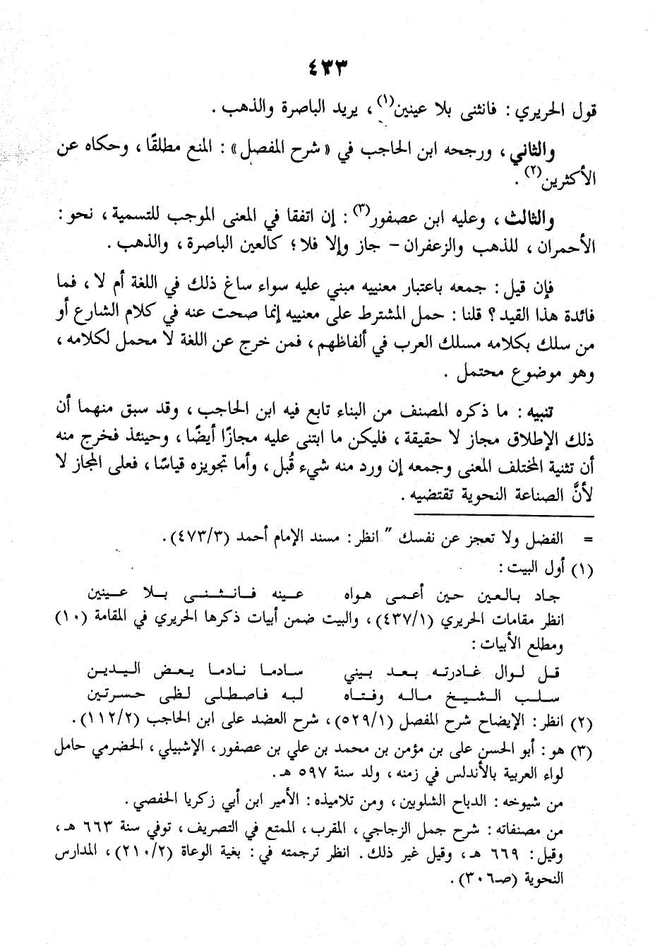 قَوْلُ الحَرِيرِيِّ: فانثنَى بلا عَيْنَيْنِ، يريدُ الباصرةَ والذَهَبَ.