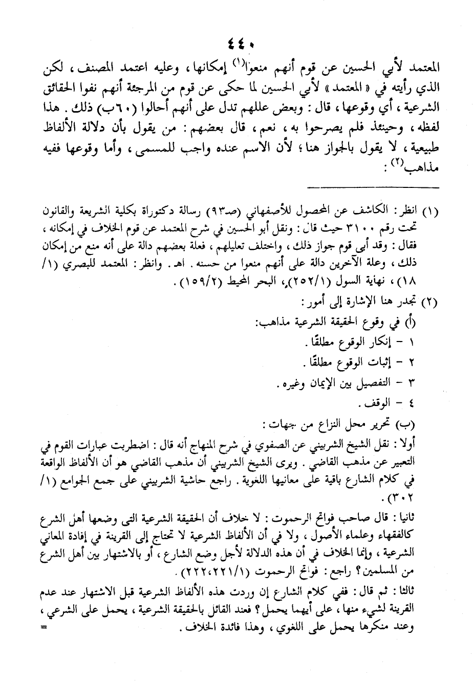 المُعْتَمَدِ لأَبِي الحُسَيْنِ عن قومٍ أنَّهم مَنَعُوا إمْكانِها، وعليه اعْتَمَدَ المُصَنِّفُ.