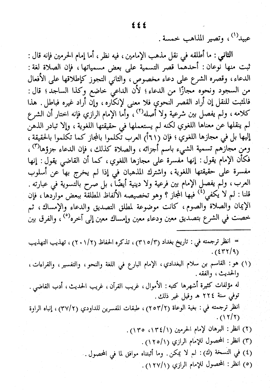 عُبَيْدٍ، وتصيرُ المذاهبُ خَمْسَةً.