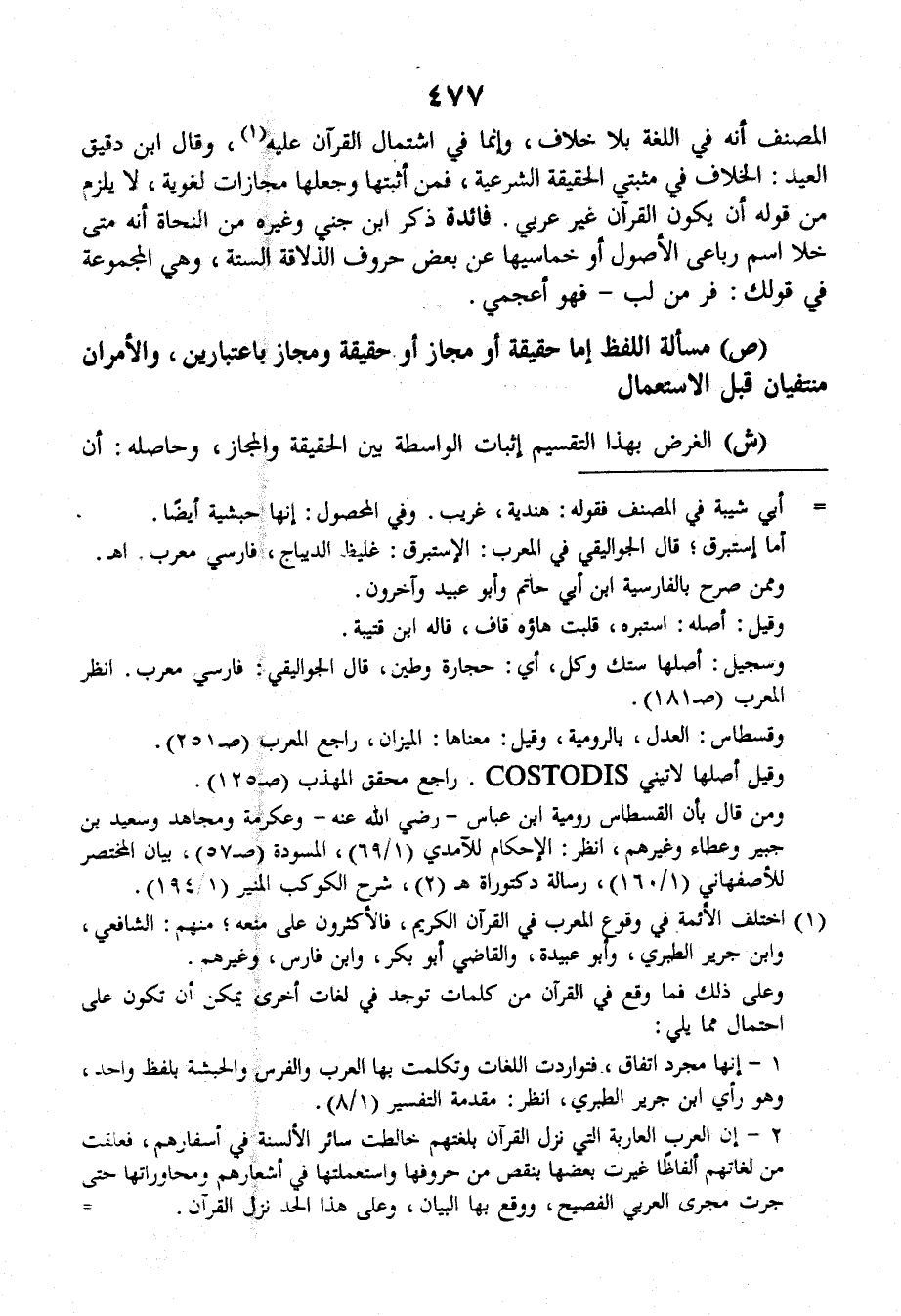 وقالَ ابنُ دَقِيقِ العِيدِ: الخلافُ في مُثْبِتِي الحقيقةِ الشرعيَّةِ، فمَن أَثْبَتَها وجَعَلَها مَجازَاتٍ لُغَوِيَّةً، لا يَلْزَمُ من قولِه أنْ يكونَ القرآنُ غيرَ عربيٍّ.