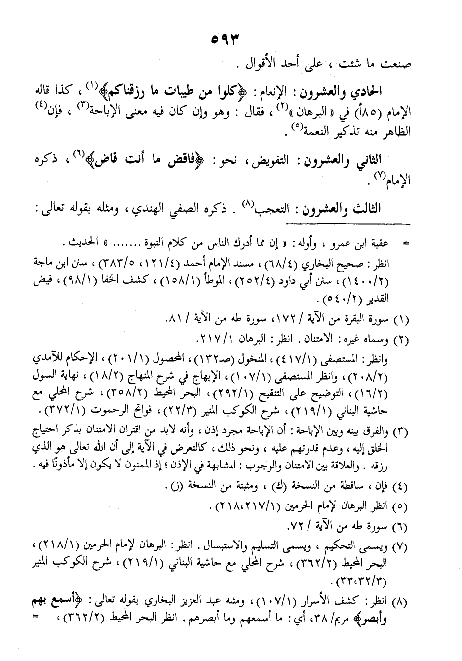 الثالث والعشرون: التعجب ذكره الصفي الهندي ومثله بقوله تعالى: