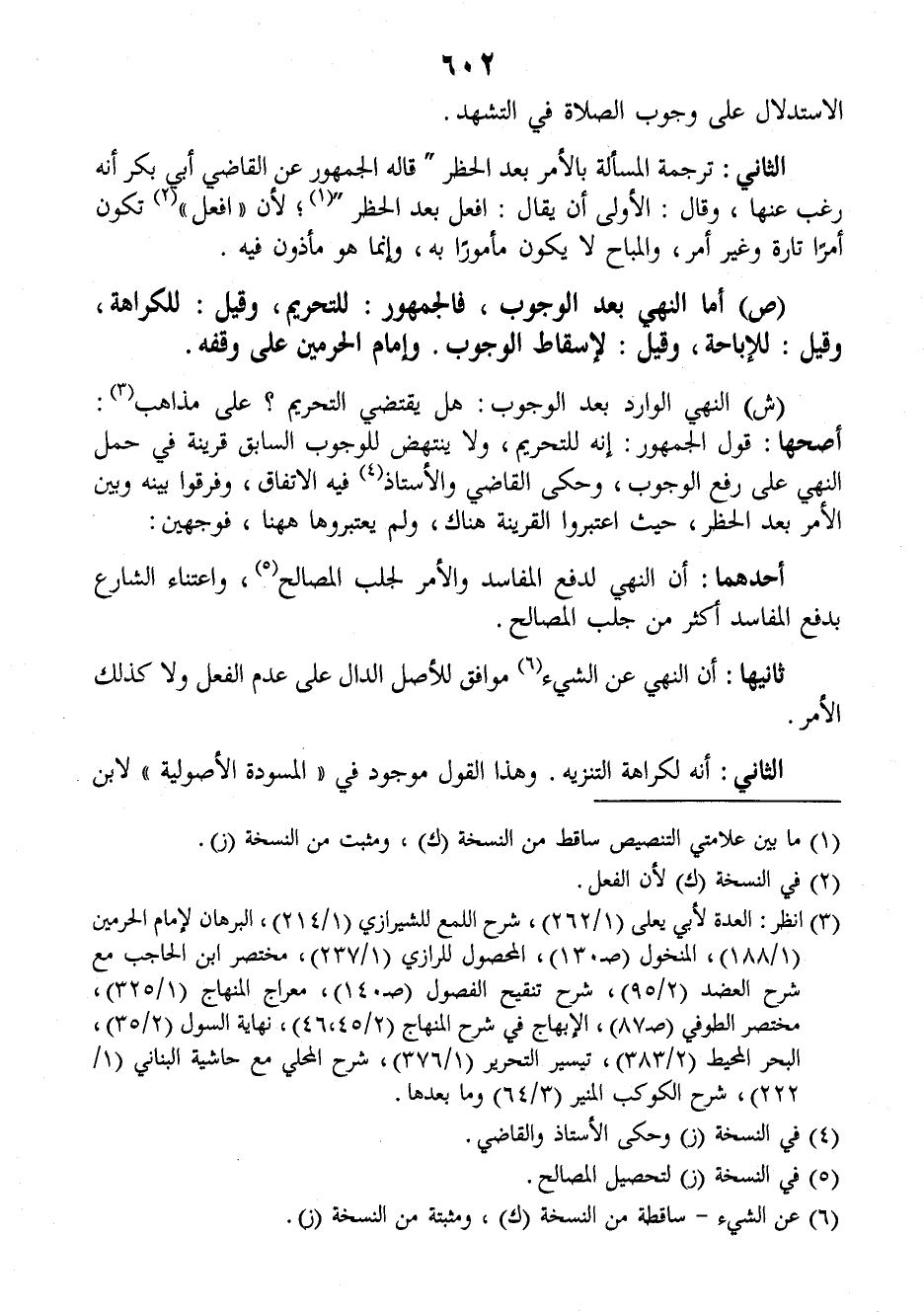(ش) النهي الوارد بعد الوجوب: هل يقتضي التحريم؟ على مذاهب: أصحها: قول الجهور: إنه للتحريم، ولا ينتهض للوجوب السابق قرينة في حمل النهي على رفع الوجوب، وحكى القاضي والأستاذ فيه الاتفاق وفرقوا بينه وبين الأمر بعد الحظر، حيث اعتبروا القرينة هناك، ولم يعتبروها ههنا، فوجهين: