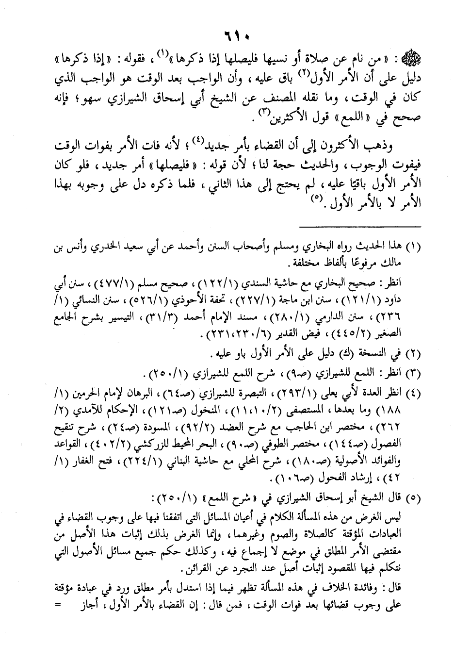 وذهب الأكثرون إلى أن القضاء بأمر جديد لأنه فات الأمر بفوات الوقت فيفوت الوجوب، والحديث حجة لنا، لأن قوله: (فليصلها) أمر جديد فلو كان الأمر الأول باقيا عليه لم يحتج إلى هذا الثاني، فلما ذكره دل على وجوبه بهذا الأمر لا بالأمر الأول.