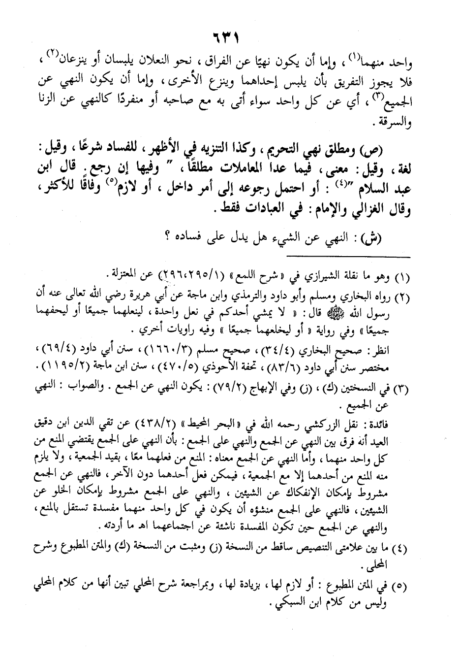 وإما أن يكون نهيا عن الفراق، نحو النعلان يلبسان أو ينزعان فلا يجوز التفريق بأن يلبس إحداهما وينزع الأخرى.