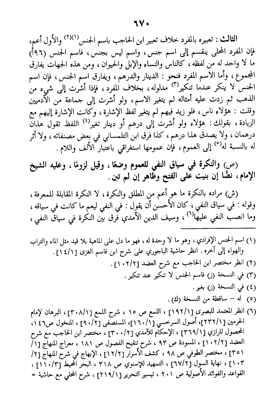 (ش) مراده بالنكرة ما هو أعم من المطلق والنكرة، لا النكرة المقابلة للمعرفة وقوله: في سياق النفي كان الأحسن أن يقول: في النفي ليعم ما كانت في سياقه وما انصب النفي عليها وسيف الدين الآمدي فرق بين النكرة في سياق النفي