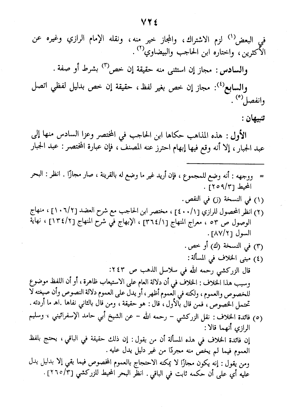الأول: هذه المذاهب حكاها ابن الحاجب في (المختصر) وعزا السادس منها إلى عبد الجبار، إلا أنه وقع فيها إبهام احترز عنه المصنف، فإن عبارة المختصر: عبد الجبار