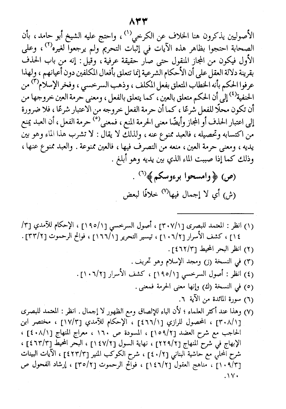 الأصوليين يذكرون هنا الخلاف عن الكرخي واحتج عليه الشيخ أبو حامد، بأن الصحابة احتجوا بظاهر هذه الآيات في إثبات التحريم ولم يرجعوا لغيره وعلى الأول فيكون من المجاز المنقول حتى صار حقيقة عرفية، وقيل: إنه من باب الحذف بقرينة دلالة العقل على أن الأحكام الشرعية إنما تتعلق بأفعال المكلفين دون أعيانهم ولهذا عرفوا الحكم بأنه الخطاب المتعلق بفعل المكلف، وذهب السرخسي وفخر الإسلام من الحنفية إلى أن الحكم متعلق بالعين، كما يتعلق بالفعل ومعنى حرمة العين خروجها من أن تكون محلا للفعل شرعا كما أن حرمة الفعل خروجه من الاعتبار شرعا فلا ضرورة إلى اعتبار الحذف أو المجاز وأيضا معني الحرمة المنع، فمعنى حرمة الفعل، أن العبد يمنع من اكتسابه وتحصيله، فالعبد ممنوع عنه، ولذلك لا يقال: لا تشرب هذا الماء وهو بين يديه، ومعنى حرمة العين، منعه من التصرف فيها، فالعين ممنوعة. والعبد ممنوع عنها وذلك كما إذا صببت الماء الذي بين يديه وهو أبلغ.
