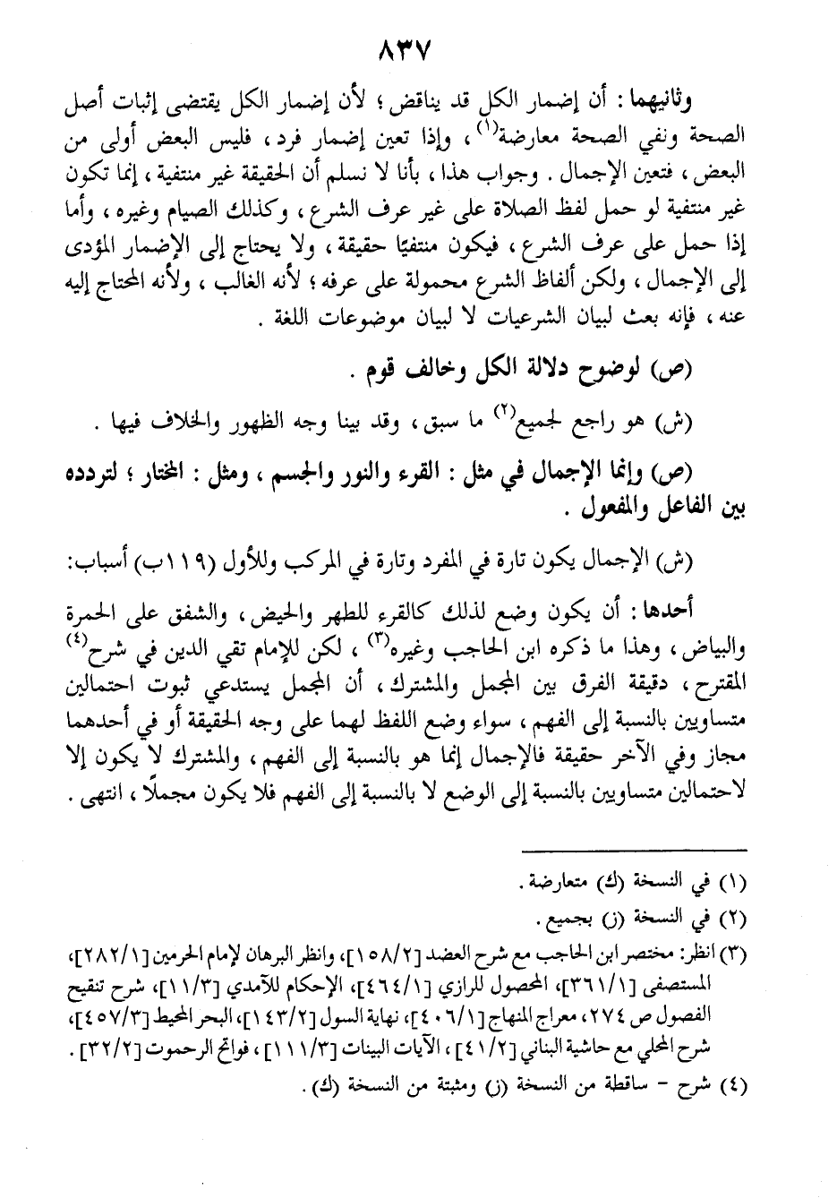 (ش) الإجمال يكون تارة في المفرد وتارة في المركب وللأول (١١٩ب) أسباب: