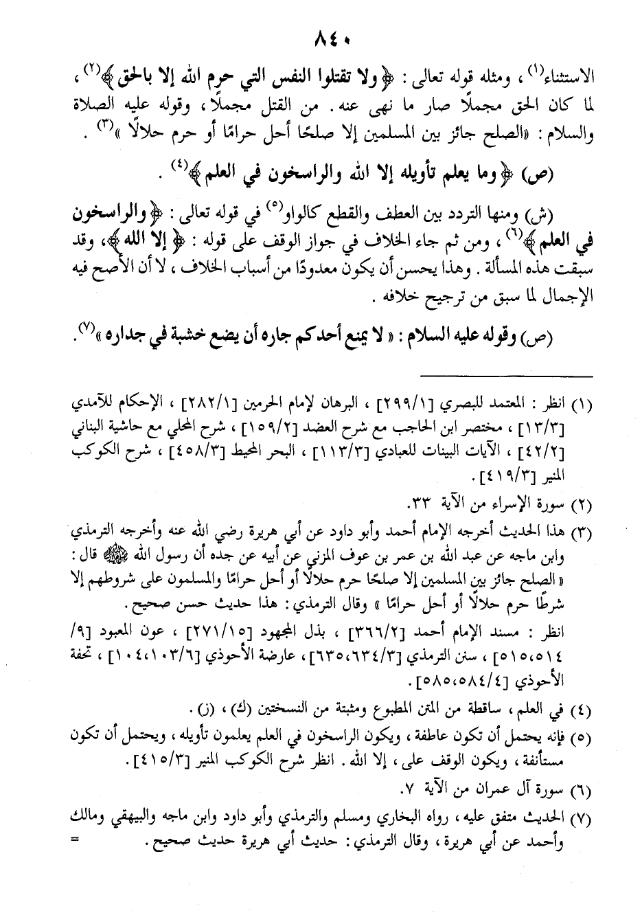 (ص) {وما يعلم تأويله إلا الله والراسخون في العلم}.