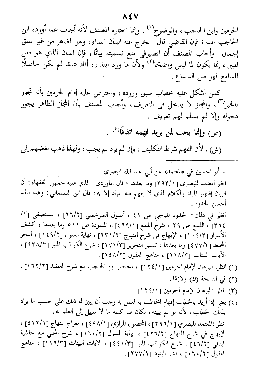 (ش) لأن الفهم شرط التكليف، وإن لم يرد لم يجب، ولهذا ذهب بعضهم إلى