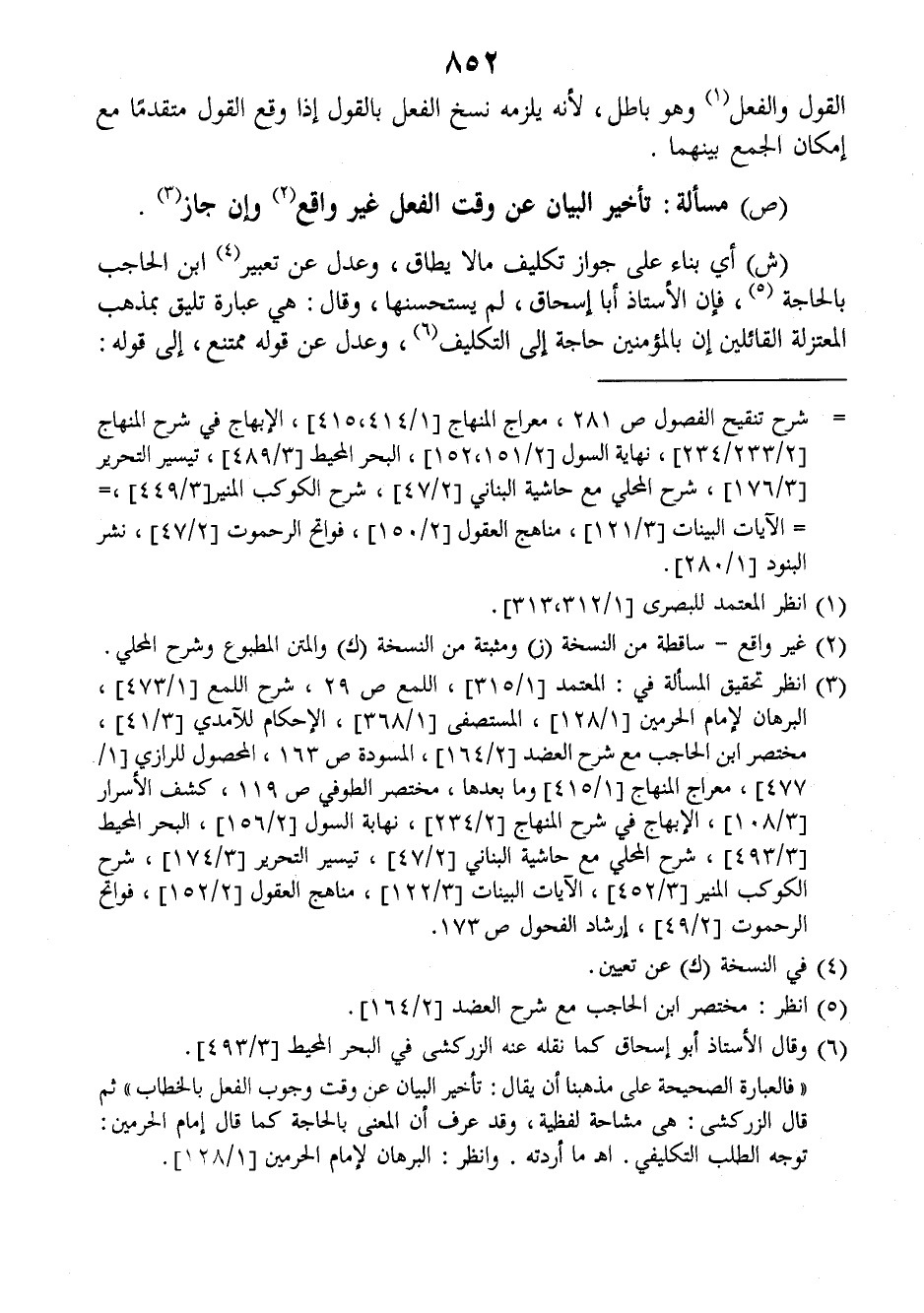 (ص) مسألة: تأخير البيان عن وقت الفعل غير واقع وإن جاز.