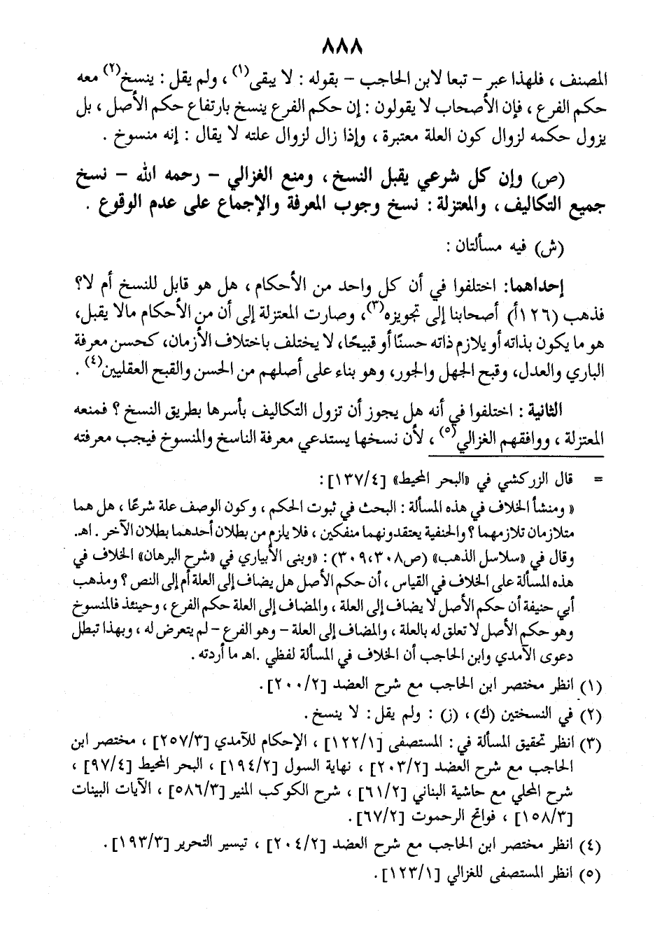 (ص) وإن كل شرعي يقبل النسخ، ومنع الغزالي رحمه الله نسخ جميع التكاليف، والمعتزلة: نسخ وجوب المعرفة والإجماع على عدم الوقوع.