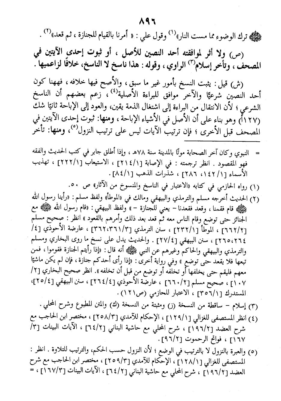 صلى الله عليه وسلم ترك الوضوء مما مست النار) وقول علي: (أمرنا بالقيام للجنازة ثم قعد).