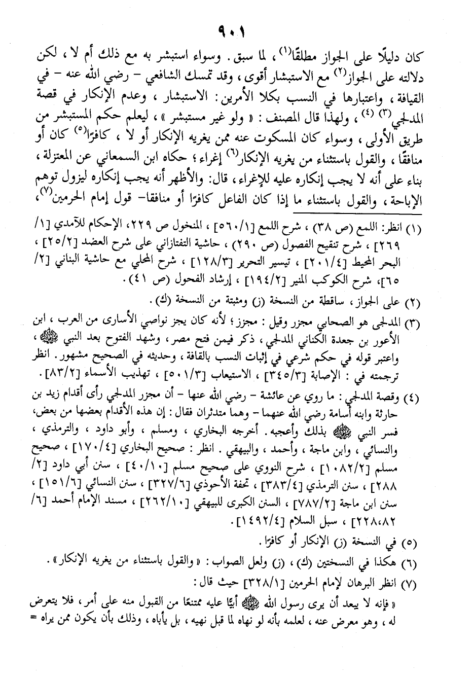كان دليلا على الجواز مطلقا، لما سبق. وسواء استبشر به مع ذلك أم لا، لكن دلالته على الجواز، مع الاستبشار أقوى، وقد تمسك الشافعي رضي الله عنه، في القيافة، واعتبارها في النسب بكلا الأمرين: الاستبشار وعدم الإنكار في قصة المدجلي، ولهذا قال المصنف: (ولو غير مستبشر) ليعلم حكم المستبشر من طريق الأولى، وسواء كان المسكوت عنه ممن يغريه الإنكار أو لا، كافرا كان أو منافقا والقول باستثناء من يغريه الإنكار إغراء حكاه ابن السمعاني عن المعتزلة بناء على أنه لا يجب إنكاره عليه للإغراء قال: والأظهر أنه يجب إنكاره ليزول توهم الإباحة، والقول باستثناء ما إذا كان الفاعل كافرا أو منافقا - قول إمام الحرمين