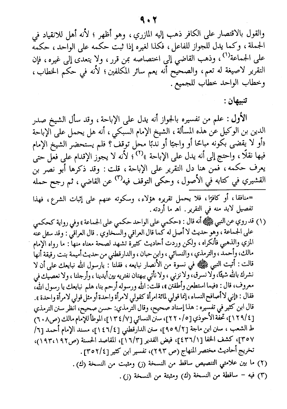 والقول بالاقتصار على الكافر ذهب إليه المازري، وهو أظهر، لأنه أهل للانقياد في الجملة، وكما يدل للجواز للفاعل، فكذا لغيره إذا ثبت حكمه على الواحد، حكمه على الجماعة وذهب القاضي إلى اختصاصه بمن قرر، ولا يتعدى إلى غيره، فإن التقرير لا صيغة له تعم، والصحيح أنه يعم سائر المكلفين، لأنه في حكم الخطاب، وخطاب الواحد خطاب للجميع.