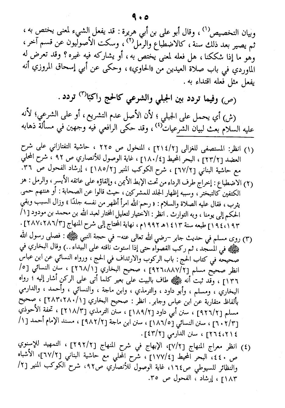 وبيان التخصيص، وقال أبو علي بن أبي هريرة: قد يفعل الشيء لمعنى يختص به ثم يصير بعد ذلك سنة، كالاضطباع والرمل وسكت الأصوليون عن قسم آخر، وهو ما إذا شككنا، هل فعله لمعنى يختص به، أو يشاركه فيه غيره؟ وقد تعرض له الماوردي في باب صلاة العيدين من (الحاوي) وحكى عن أبي إسحاق المروزي أنه يفعل مثل فعله اقتداء به.