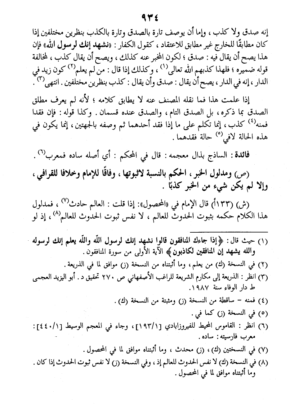 (ش) (١٣٣أ) قال الإمام في (المحصول): إذا قلت: العالم حادث فمدلول هذا الكلام حكمه بثبوت الحدوث للعالم، لا نفس ثبوت الحدوث للعالم إذ لو