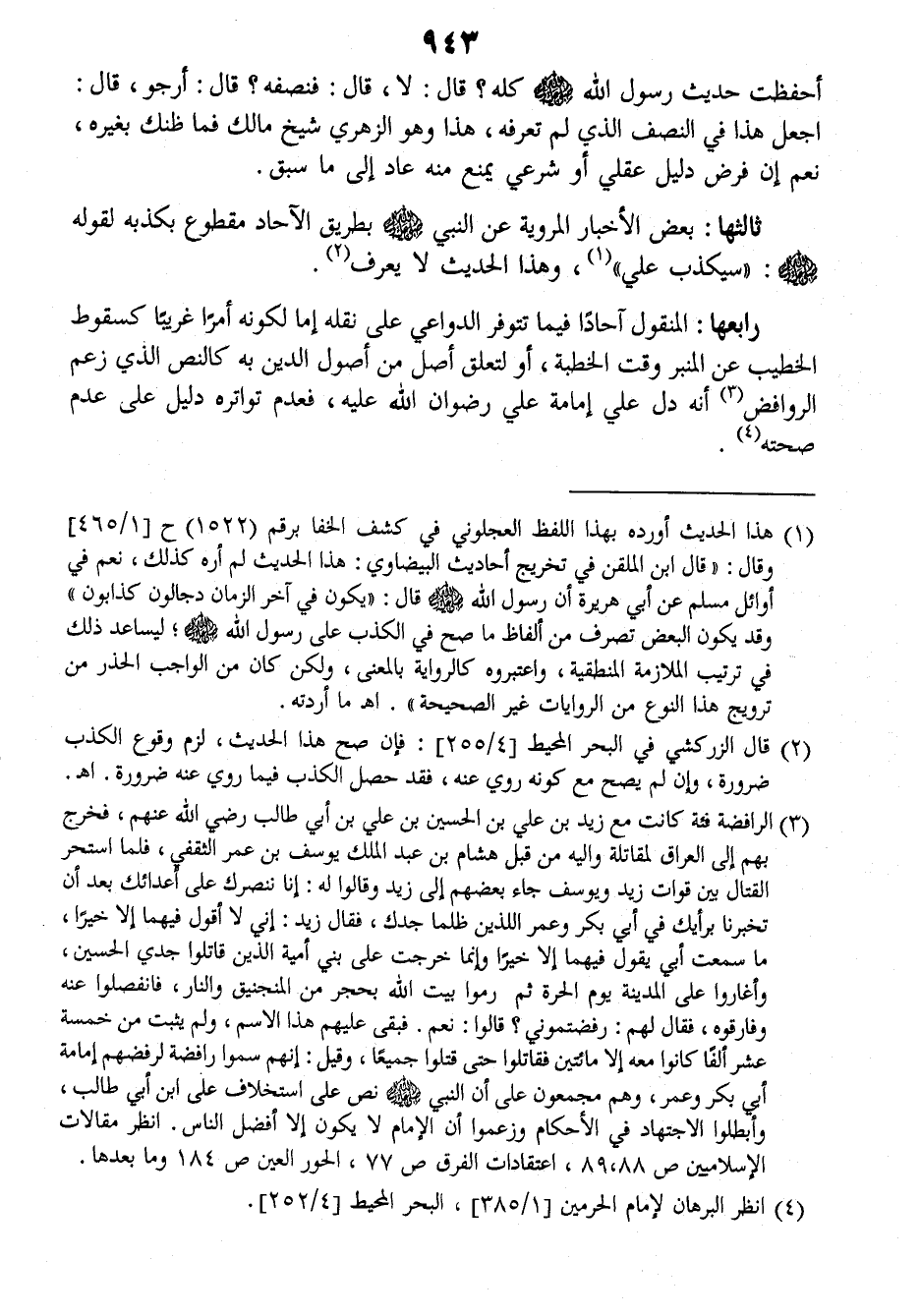 ثالثها: بعض الأخبار المروية عن النبي صلى الله عليه وسلم بطريق الآحاد مقطوع بكذبه لقوله صلى الله عليه وسلم: ((سيكذب علي)) وهذا الحديث لا يعرف.