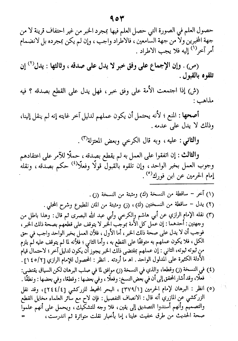 (ش) إذا اجتمعت الأمة على وفق خبر، فهل يدل على القطع بصدقه؟ فيه مذاهب:
