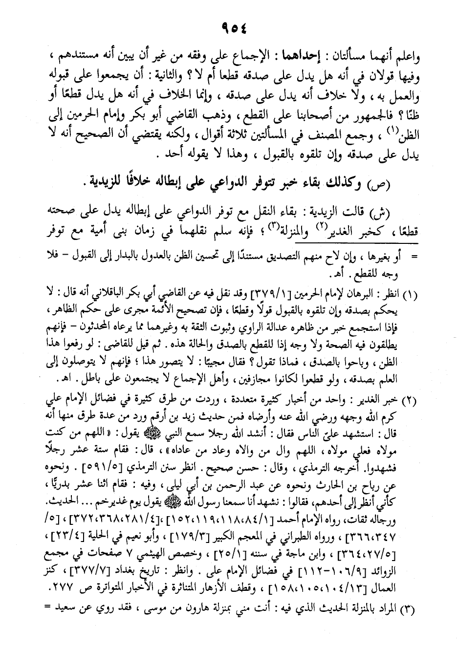 (ش) قالت الزيدية: بقاء النقل مع توفر الدواعي على إبطاله يدل على صحته قطعا، كخبر الغدير والمنزلة فإنه سلم نقلهما في زمان بني أمية مع توافر