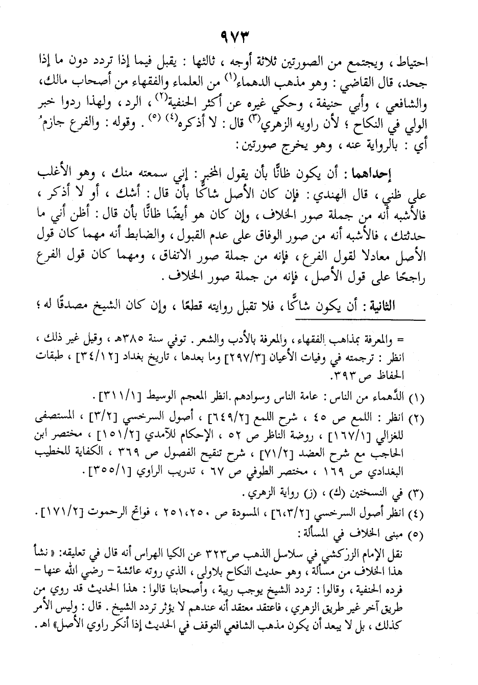 احتياط ويجتمع من الصورتين ثلاثة أوجه، ثالثها: يقبل فيما إذا تردد دون ما إذا جحد، قال القاضي: وهو مذهب الدهماء من العلماء والفقهاء من أصحاب مالك، والشافعي، وأبي حنفية وحكي غيره عن أكثر الحنفية الرد، ولهذا ردوا خبر الولي في النكاح، لأن راويه الزهري قال: لا أذكره، وقوله: والفرع جازم أي: بالرواية عنه، وهو يخرج صورتين: