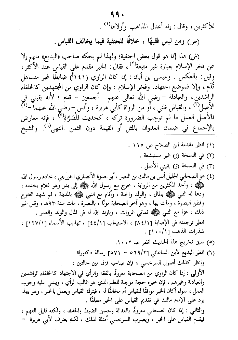 (ش) هذا إنما هو قول بعض الحنفية، ولهذا لم يحكه صاحب (البديع) منهم إلا عن فخر الإسلام بعبارة غير متبعة، فقال: الخبر مقدم على القياس عند الأكثر وقيل: بالعكس. وعيسى بن أبان: إن كان الراوي (١٤١أ) ضابطا غير متساهل قدم، وإلا فموضع اجتهاد. وفخر الإسلام: وإن كان الراوي من المجتهدين كالخلفاء الراشدين، والعبادلة رضي الله تعالى عنهم أجمعين، قدم، لأنه يقيني في الأصل والقياس ظني أو من الرواة كأبي هريرة، وأنس رضي الله عنهما فالأصل العمل ما لم توجب الضرورة تركه، كحديث المصراة، فإنه معارض بالإجماع في ضمان العدوان بالمثل أو القيمة دون الثمن. انتهى. والشيخ