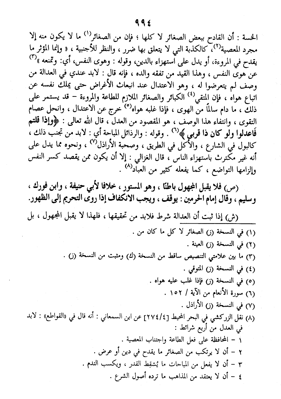 (ش) إذا ثبت أن العدالة شرط فلا بد من تحقيقها, فلهذا لا يقبل المجهول, بل