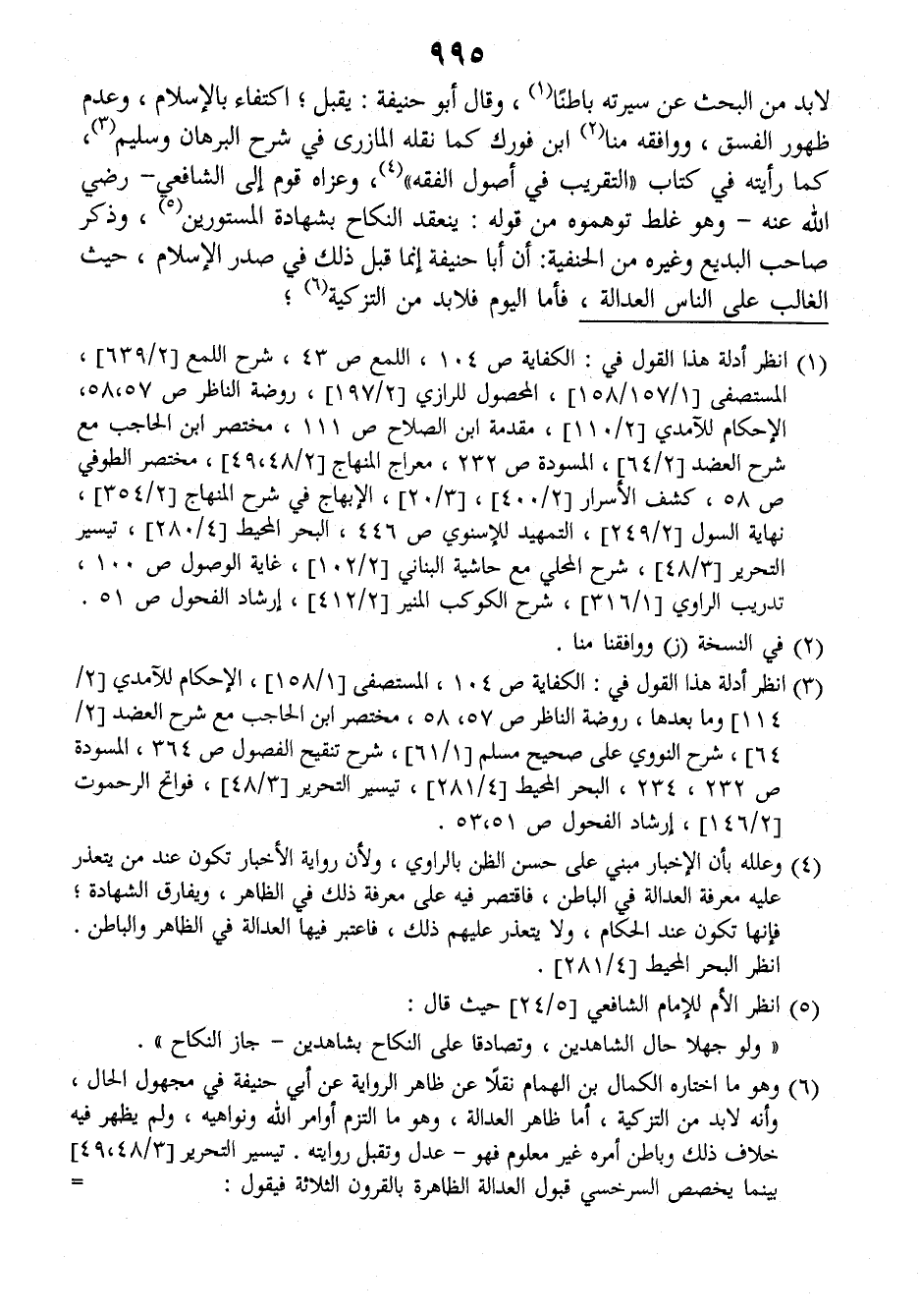 لا بد من البحث عن سيرته باطنا وقال أبو حنيفة: يقبل، اكتفاء بالإسلام وعدم ظهور الفسق، ووافقه منا ابن فورك كما نقله المازري في شرح (البرهان) وسليم، كما رأيته في كتاب (التقريب في أصول الفقه) وعزاه قوم إلى الشافعي رضي الله عنه، وهو غلط توهموه من قوله: ينعقد النكاح بشهادة المستورين، وذكر صاحب (البديع) وغيره من الحنفية: أن أبا حنفية إنما قبل ذلك في صدر الإسلام حيث الغالب على الناس العدالة، فأما اليوم فلا بد من التزكية.