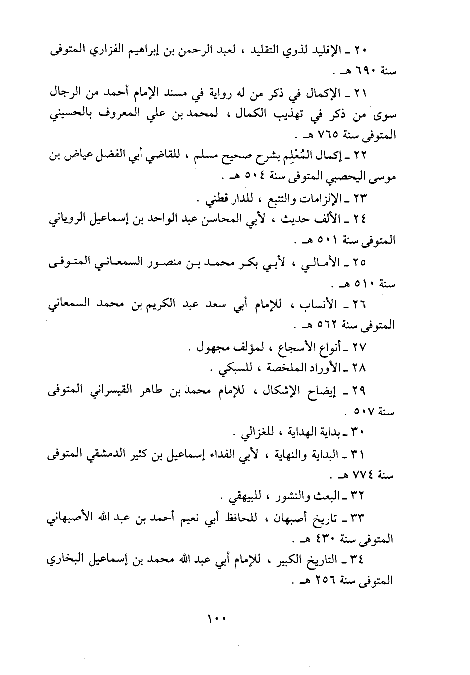 ٢١ - الإكمال في ذكر من له رواية في مسند الإمام أحمد من الرجال سوى من ذكر في تهذيب الكمال، لمحمد بن علي المعروف بالحسيني المتوفى سنة ٧٦٥ هـ.
