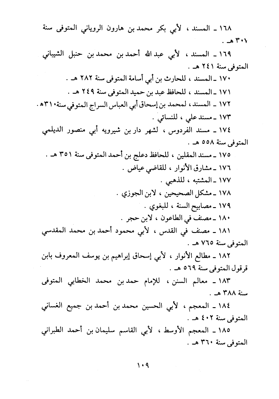 ١٦٩ - المسند، لأبي عبد الله أحمد بن محمد بن حنبل الشيباني المتوفى سنة ٢٤١ هـ.