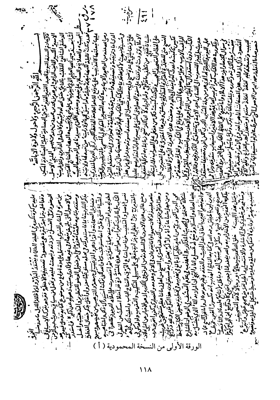 الورقة الأولي من النسخة المحمودية (أ)