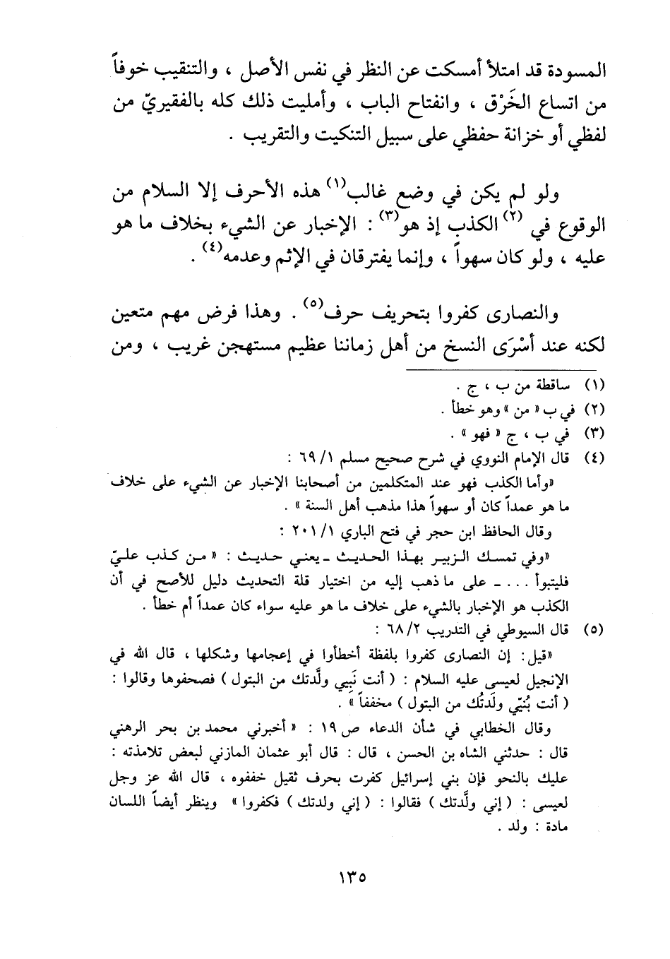 والنصارى كفروا بتحريف حرف. وهذا فرض مهم متعين لكنه عند أسْرَى النسخ من أهل زماننا عظيم مستهجن غريب، ومن