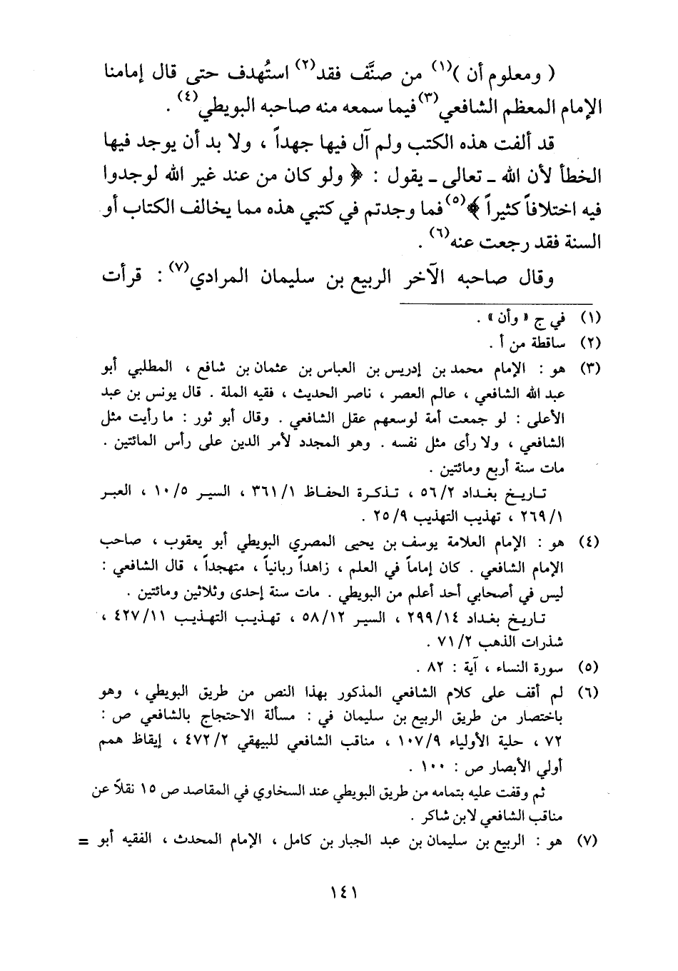 (ومعلوم أن) من صنَّف فقد استُهدف حتى قال إمامنا الإمام المعظم الشافعي فيما سمعه منه صاحبه البويطي.