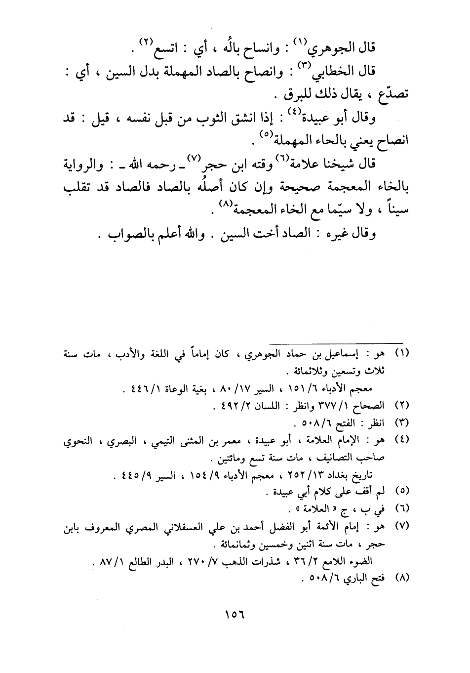 قال شيخنا علامة وقته ابن حجر -رحمه الله-: والرواية بالخاء المعجمة صحيحة وإن كان أصلُه بالصاد فالصاد قد تقلب سيناً، ولا سيّما مع الخاء المعجمة.