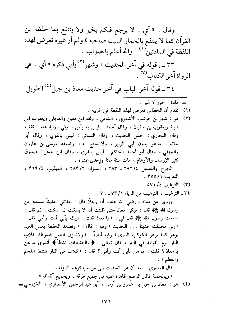 ٣٤ - قوله آخر الباب في آخر حديث معاذ بن جبل الطويل