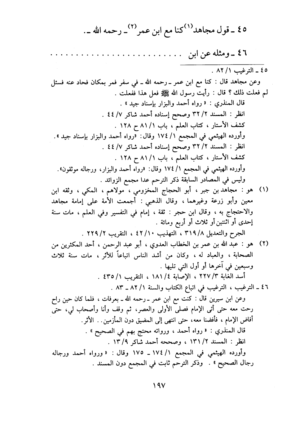٤٥ - قول مجاهد كنا مع ابن عمر -رحمه الله-.