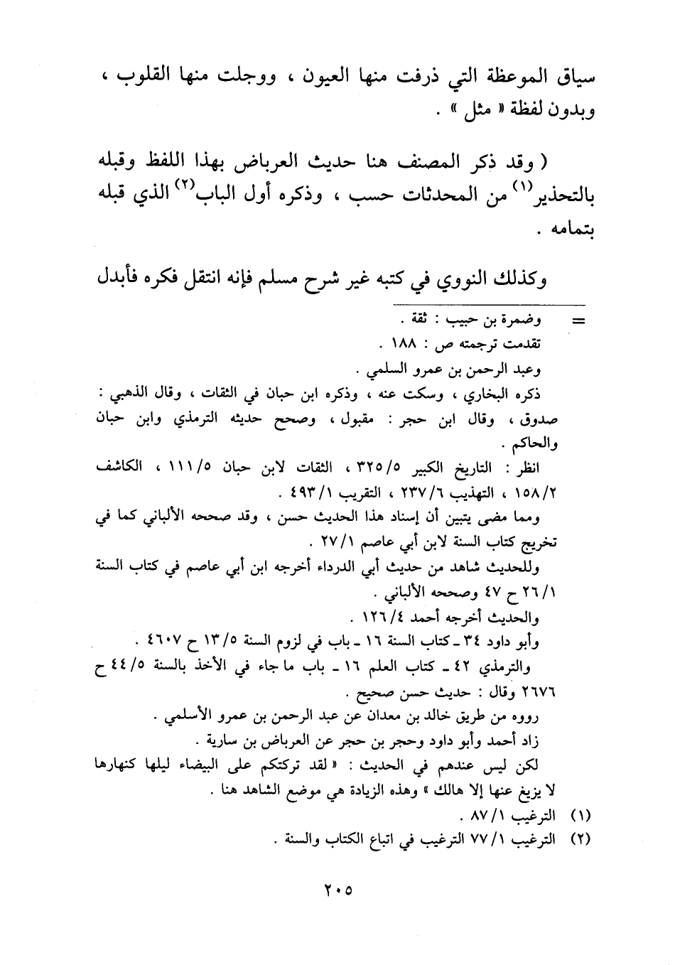 (وقد ذكر المصنف هنا حديث العرباض بهذا اللفظ وقبله بالتحذير من المحدثات حسب، وذكره أول الباب الذي قبله بتمامه.